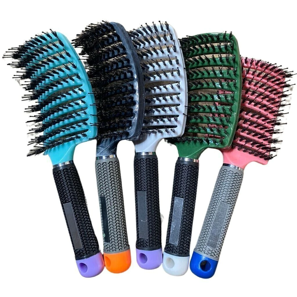5 Escovas Raquete Vazadas Profissionais com cerdas de Javali e Nylon (cores sortidas).