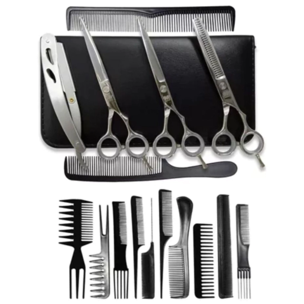 Kit 3 Tesouras Profissionais + Kit de Pentes de Carbono – Corte Preciso e Desempenho Profissional