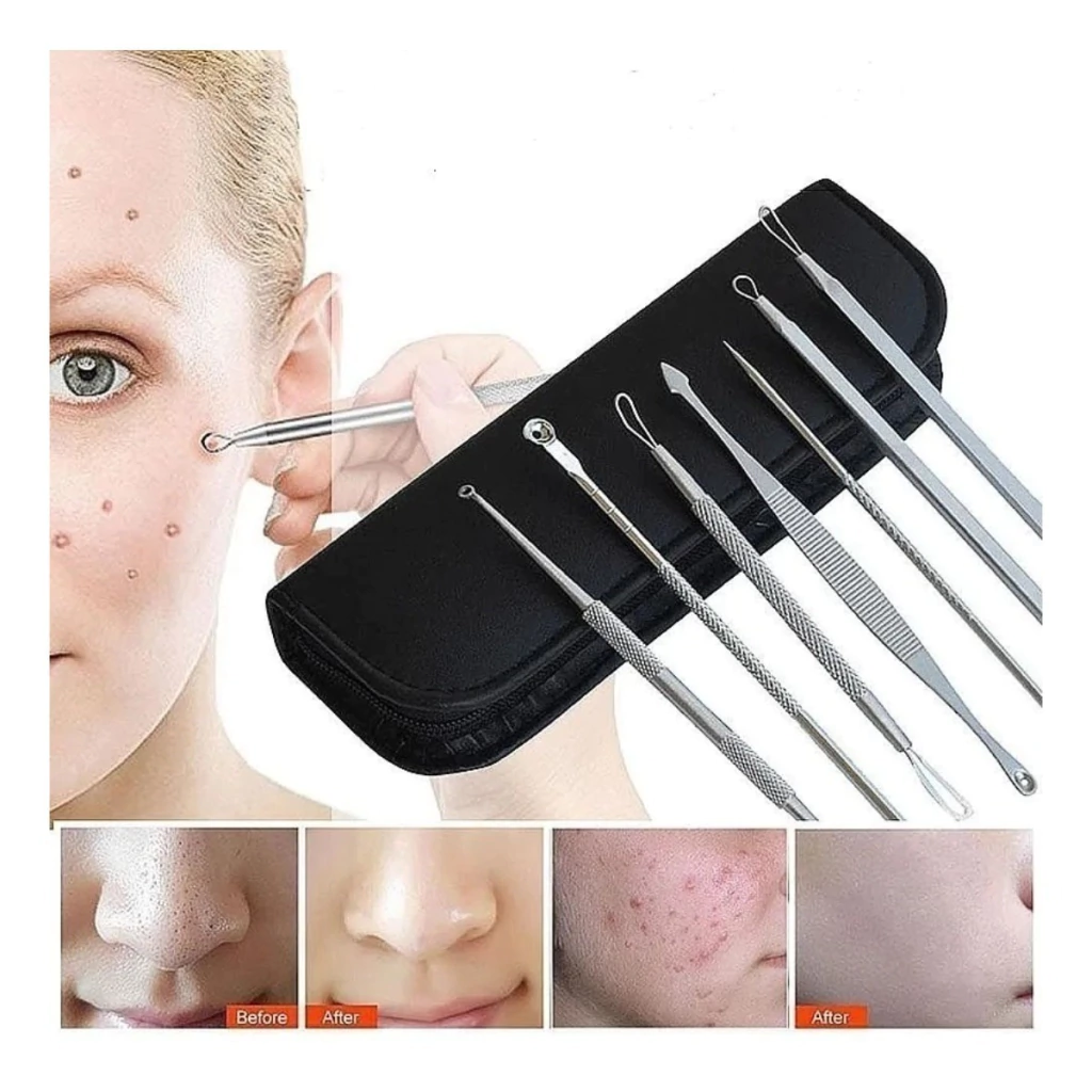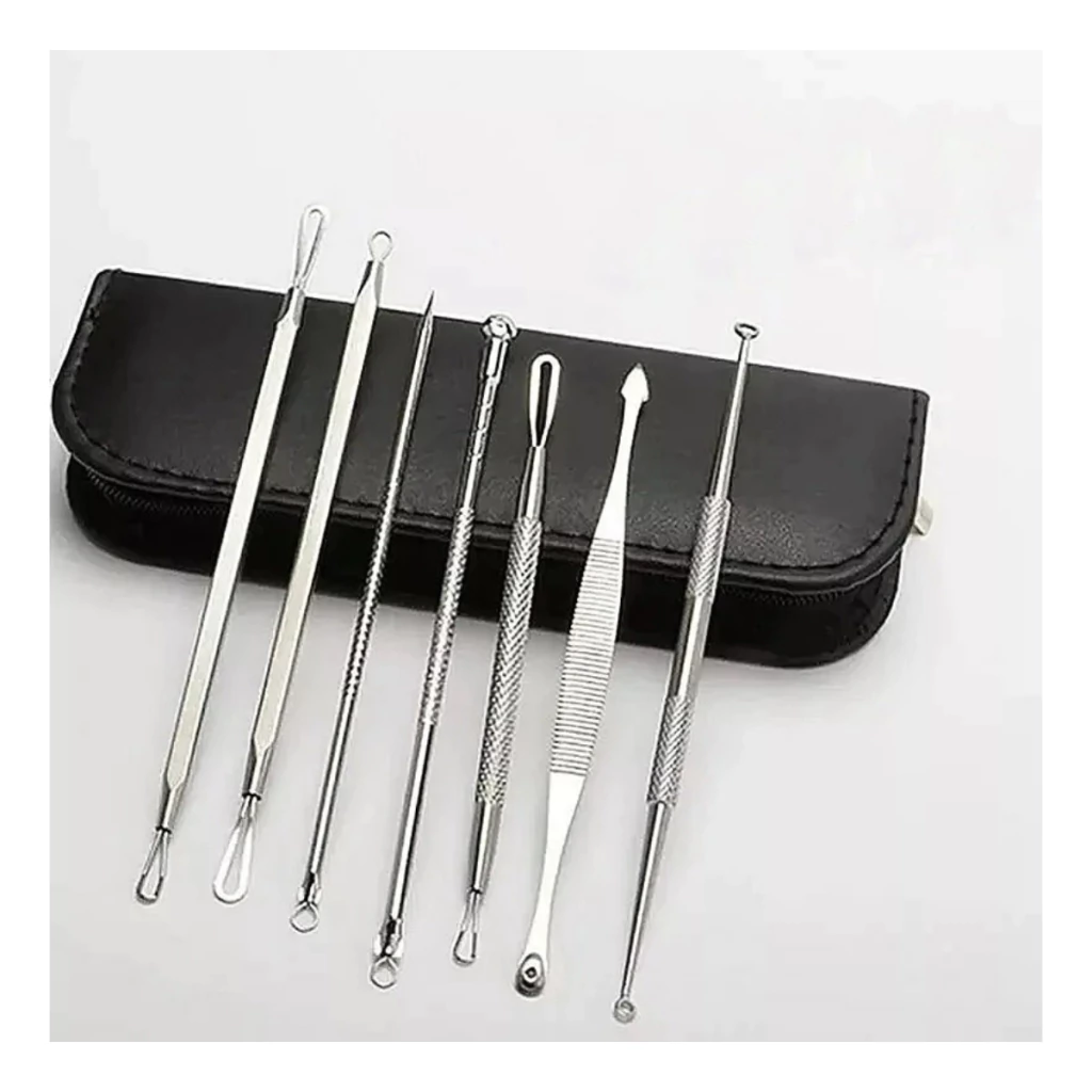 Kit 7 Curetas Remove Cravos Espinhas Aço Inoxidável C/estojo