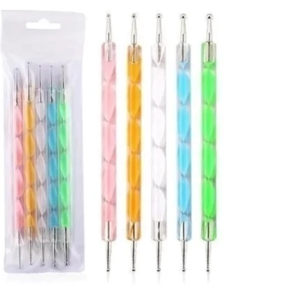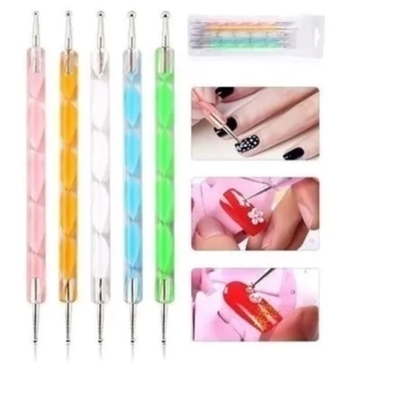 5 ferramentas de ponta dupla (boleadores + pincéis) para decoração de unhas.