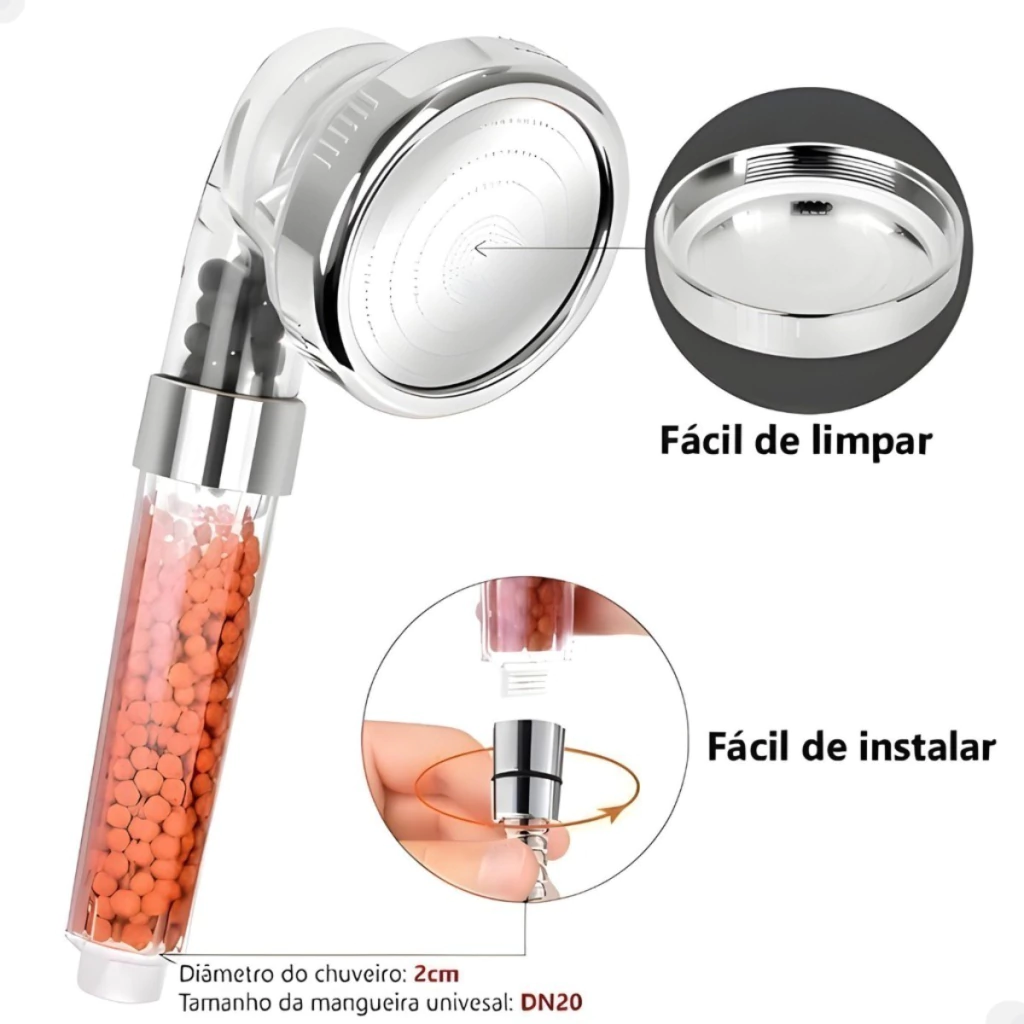 1 Ducha cromada ionizada com pedras bioativadas.